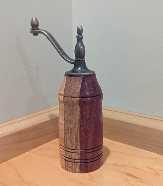 5" Antique Style Pepper Mill - Purple Heart/Maple/Bastogne Walnut