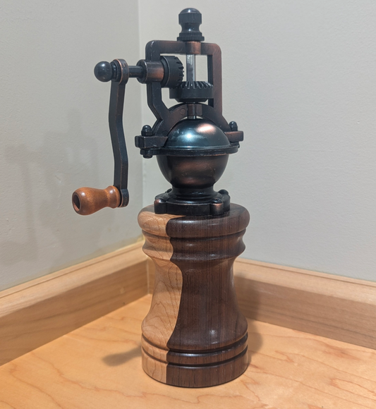 8" Antique Style Pepper Mill - Curly Maple/Walnut/Padauk